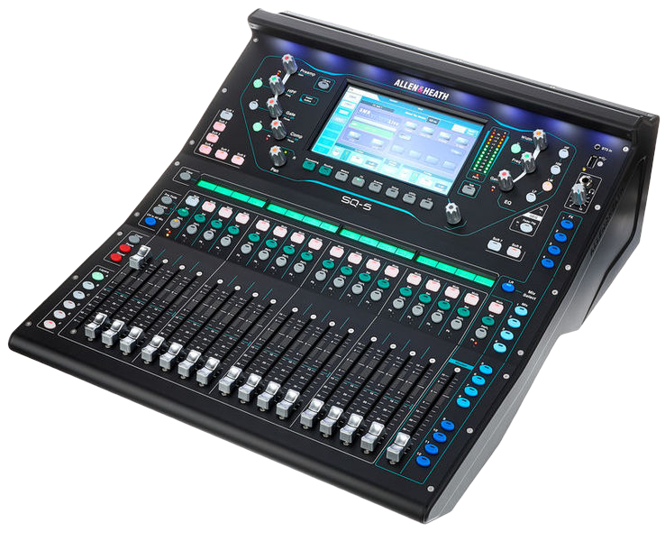 La SQ-5 d'Allen & Heath est une console numérique de dernière génération équipée du moteur FPGA "XCVI" à 96 kHz initialement développé pour ses modèles haut de gamme, offrant une résolution audio exceptionnelle et une latence ultra faible de 0,7 ms. Equipée de 17 faders et de 16 entrées locales, la SQ-5 est capable de développer jusqu'à 48 entrées en association à une large sélection de boîtiers de scène numériques Allen & Heath.